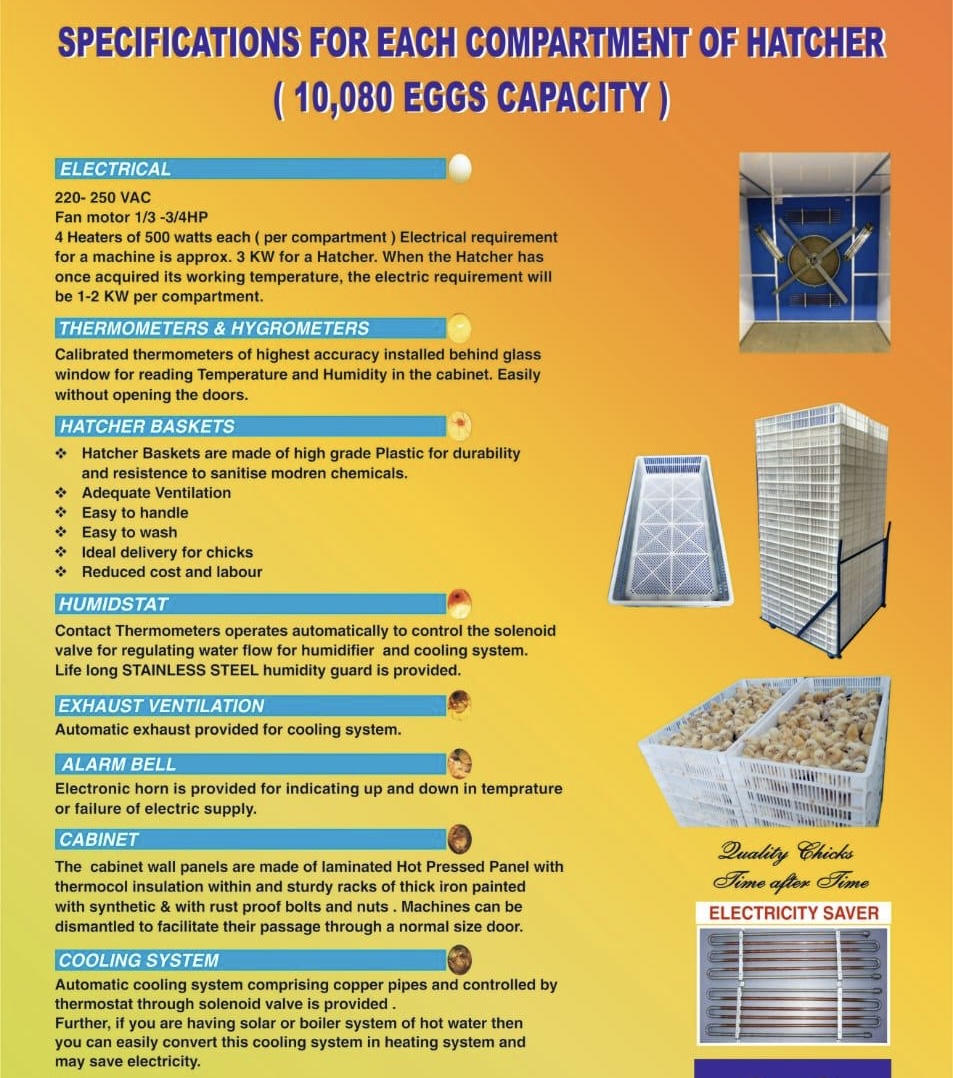 Since, insertion of the year 1986, the Company of Karamsar has pioneered in the art of Manufacturing Poultry Appliances in India. The Company is manufacturing Best Quality, Fully Automatic Incubators and supplying all over the India and exporting Nepal, Bangladesh, Oman, africa, Srilanka and U.A.E. Karamsar's Machines enjoys the most desireable status of providing best value for Money for all the equipments of Hatchery's Business.
